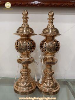 Tên gọi sản phẩm: Đèn thờ đồng đỏ khảm ngũ sắc